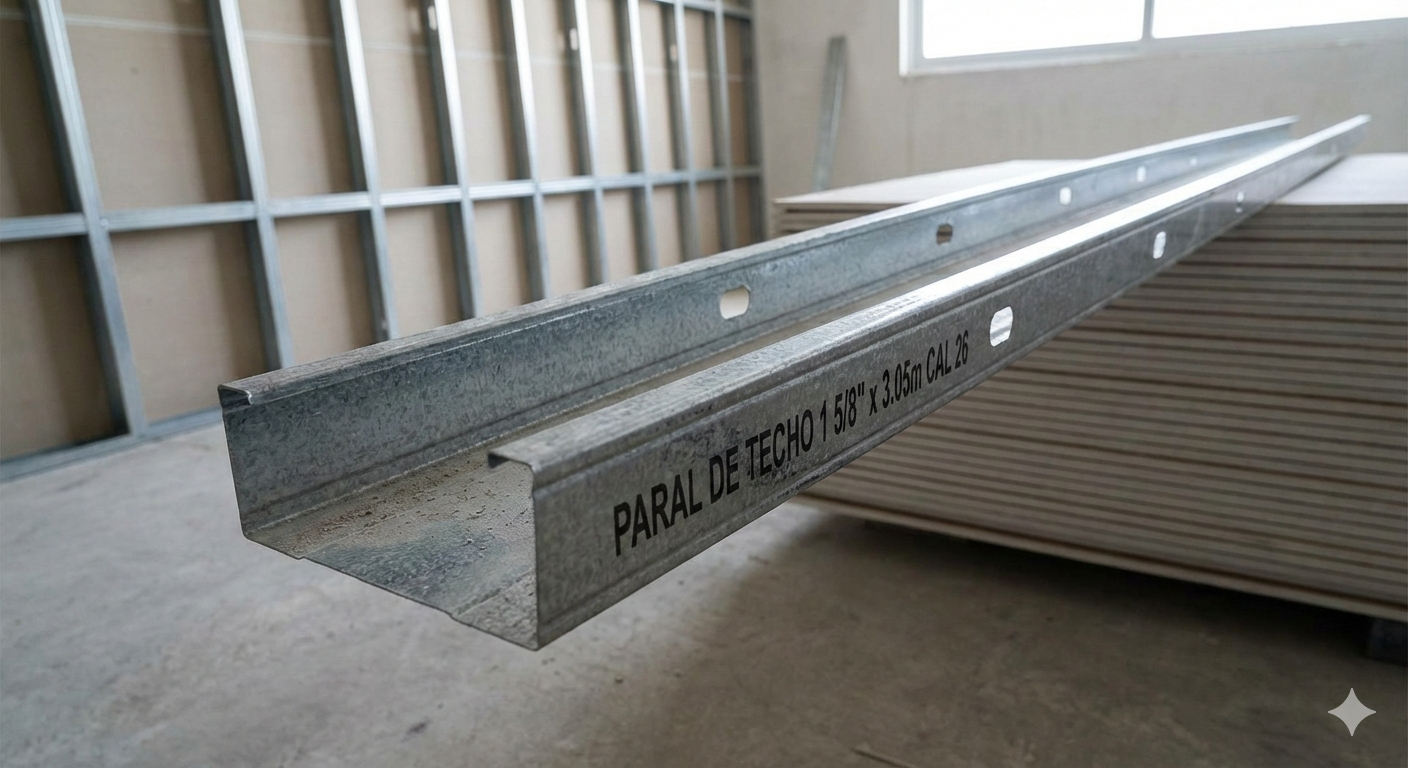 Paral de techo estructural de acero galvanizado, calibre 26, con dimensiones de 1 5/8 pulgadas de ancho y 3.05 metros de largo. Diseñado para sistemas de perfilería en construcción ligera, proporciona resistencia y durabilidad en aplicaciones de techumbre y divisiones interiores. El galvanizado protege contra la corrosión, extendiendo la vida útil del material. Ideal para proyectos residenciales y comerciales que requieren perfiles de calidad estructural.